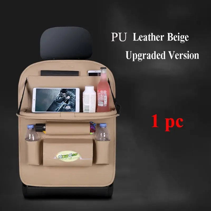 1* Car Seat Back Organizer PU Leather Kick Mat Storage Bag Foldable Car Seat